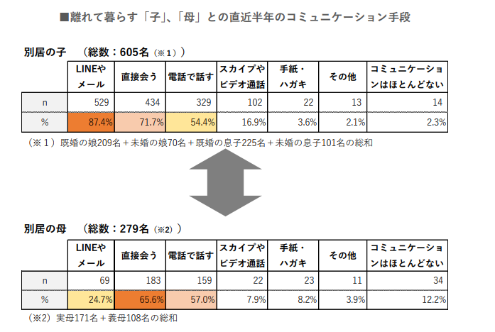 ・離れて暮らす子世代との普段のコミュニケーションは「LINEやメールなど文字や写真でのやり