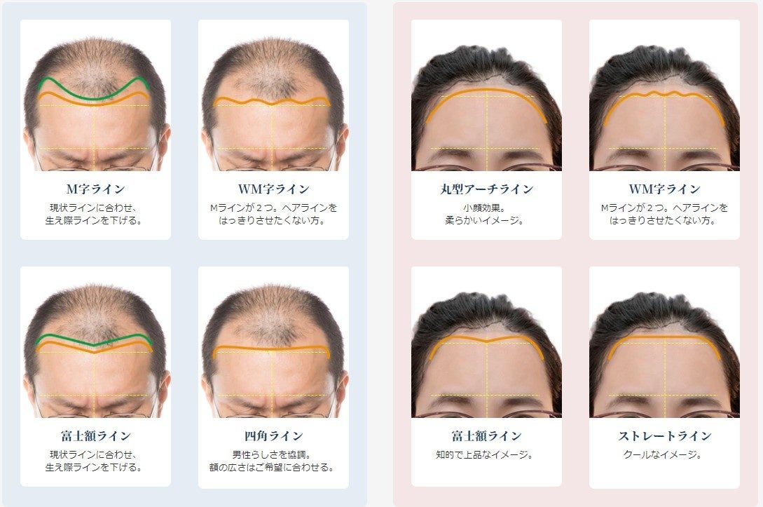 おでこの筋肉により植毛可能な範囲を考慮した医学的なヘアライン