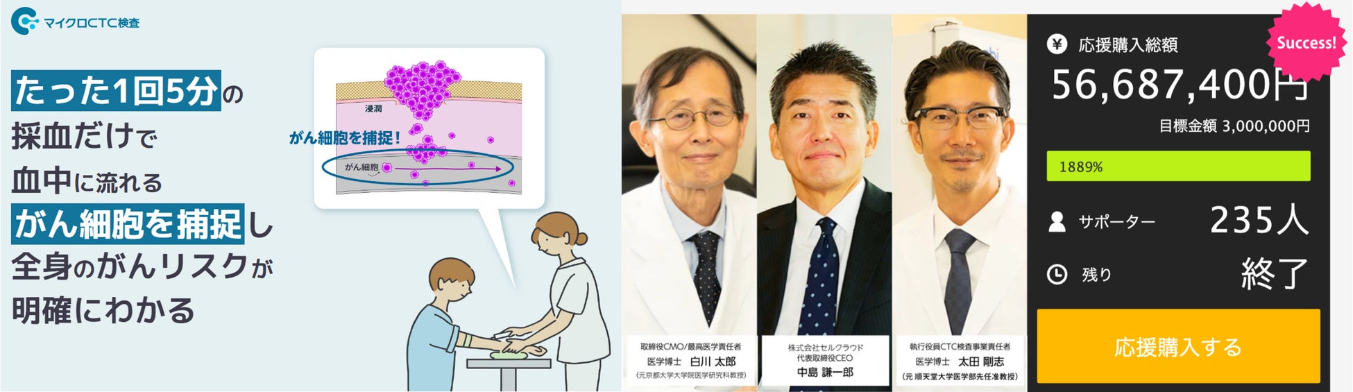 ※2 セルクラウド調べ。Makuakeにおける検索ワード「医療」で該当する116件および、「検査」で該当する62件のプロジェクト(2023年4月3日時点)において現在確認できる全期間データを対象に調査