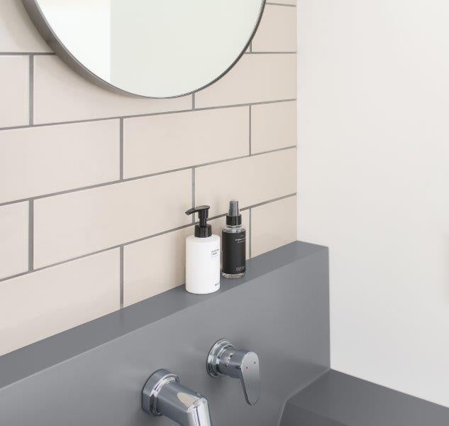 ハイバックの立ち上がり部分は水が掛からないため、ハンドソープ等の小物置きに便利です。