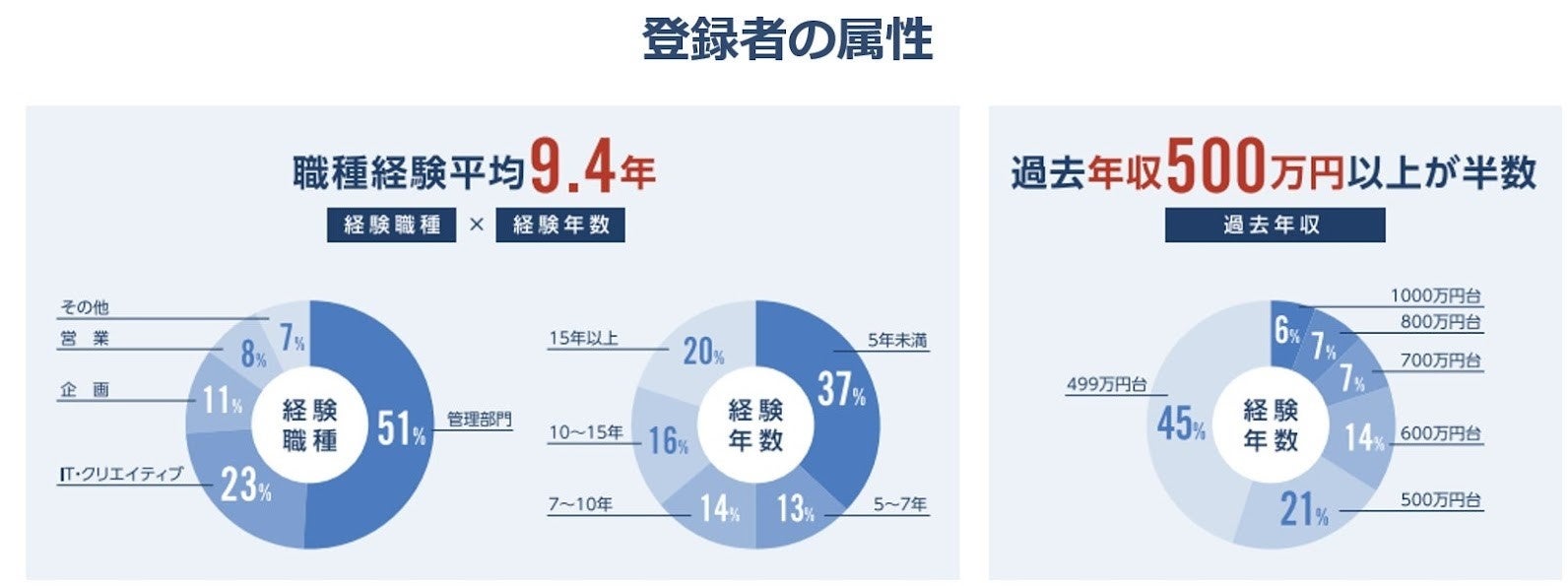 当社がご紹介してきたのは、職種経験年数平均9.4年とスキルや経験が豊富であるにもかかわらず、育児や介護と両立するために、時間や働く場所に制約のある方々です。また、最近では、長年勤めた大手企業を定年退職した経験豊富な方や、副業、フリーランスとして活躍されている方もご紹介しております。