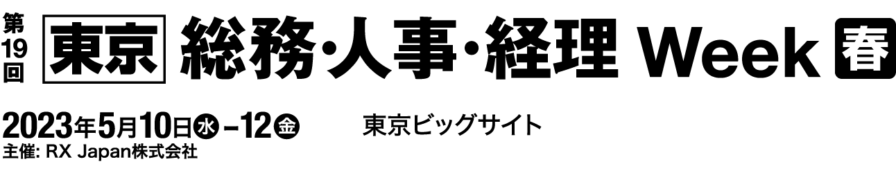 「第19回【東京】総務・人事・経理 Week」とは、総務・人事・経理・法務・広報・経営者などに向けた展示会です。9つの専門展で構成され、今年は過去最大規模の約500社が一堂に会し、製品・サービスを展示いたします。