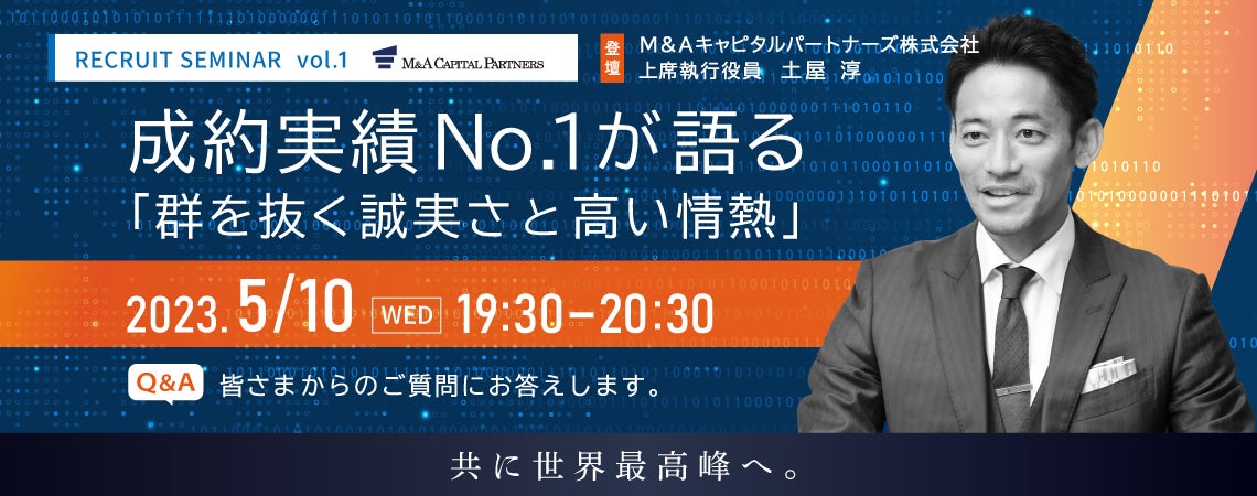 MACPは今後も、最高の人財と共に「世界最高峰」を目指してまいります。そして当社では現在、同じく高い志を持つメンバーを積極採用中です。M&Aキャピタルパートナーズに少しでも興味がある方は是非こちらのセミナーにご参加ください!