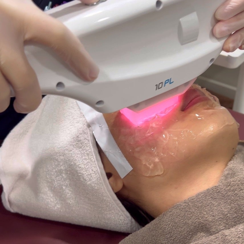 10PLは従来のIPL(=光治療)よりも肌再生を促進し、副作用やリスクが少なく、薄い細かいシミなど、従来のIPLでは治療が難しかったシミにも効果が期待できる機器です。