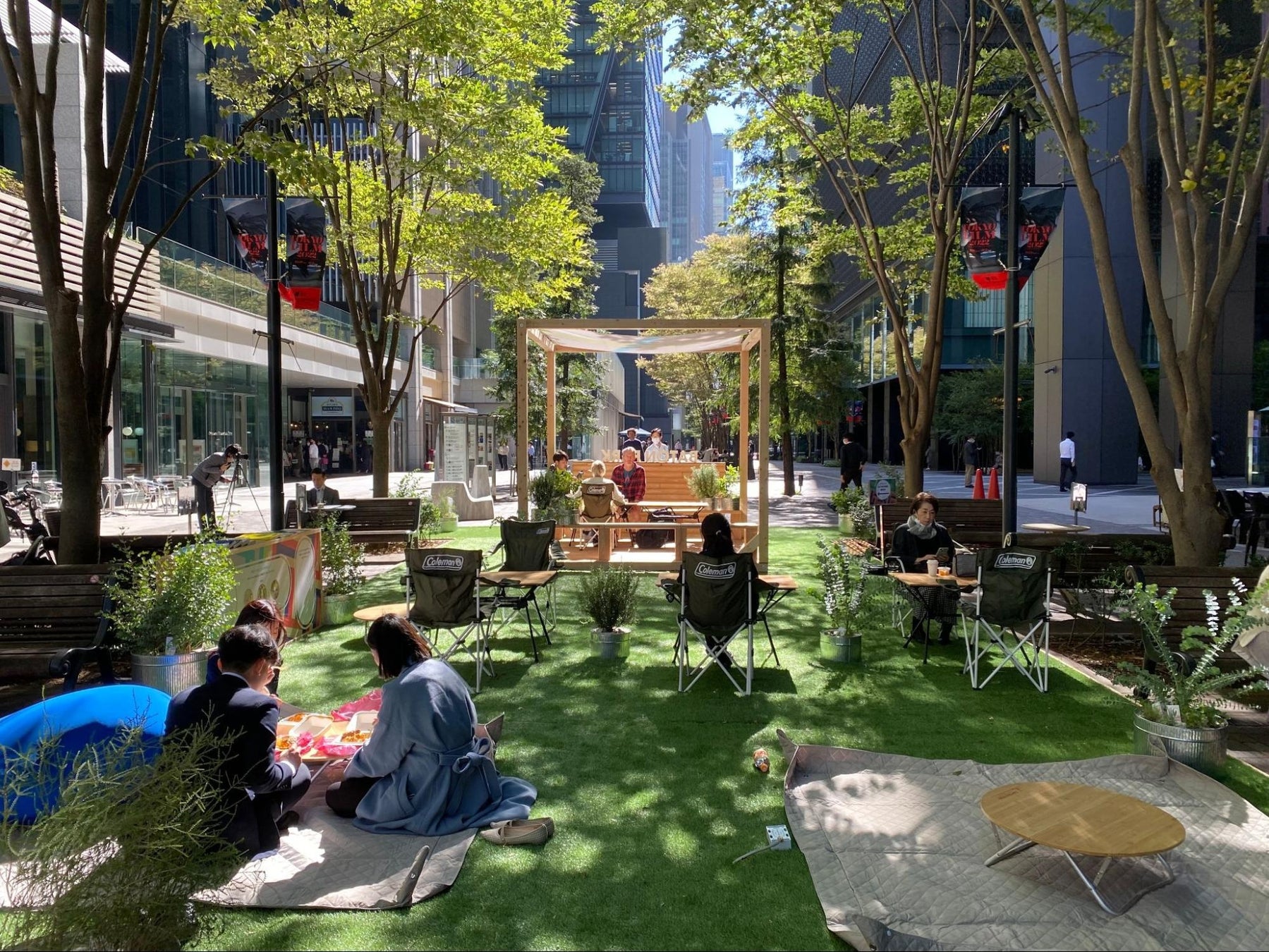 神田と大手町を繋ぐ場所として「外空間」の居方を検証する社会実験として企画された半公共空間。ブランディング、企画・運営、デザイン監修を行い、 普段歩道として活用されるエリアで居心地の良いリラックスゾーンを設けたり、老舗和菓子店などが出店する屋台を制作し、公共空間を私的利用する試みにチャレンジしました。