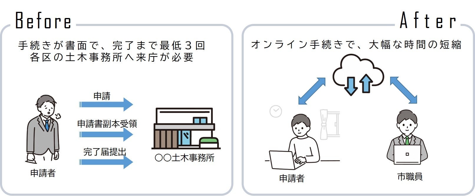 申請手続きは例年 18 区合計で約 7,000 件あり、手続きのオンライン化を進めることで、申請者の移動時間や窓口での対応時間の大幅な縮減を図るなど、行政サービスの向上に努めます。