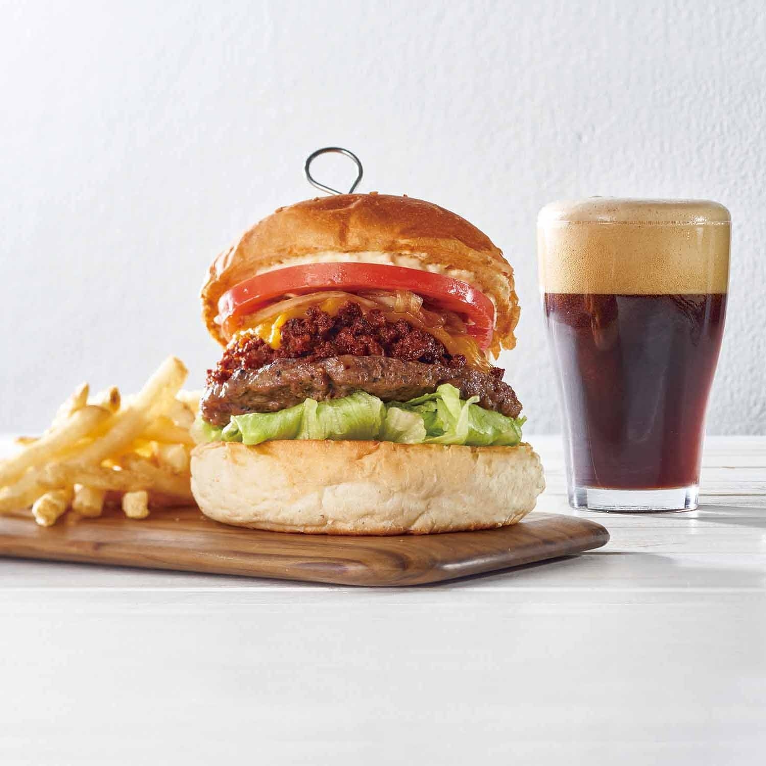 ビーフの旨みにチリソース、チェダーチーズがマッチしたバーガーをクラフトビールとともに。