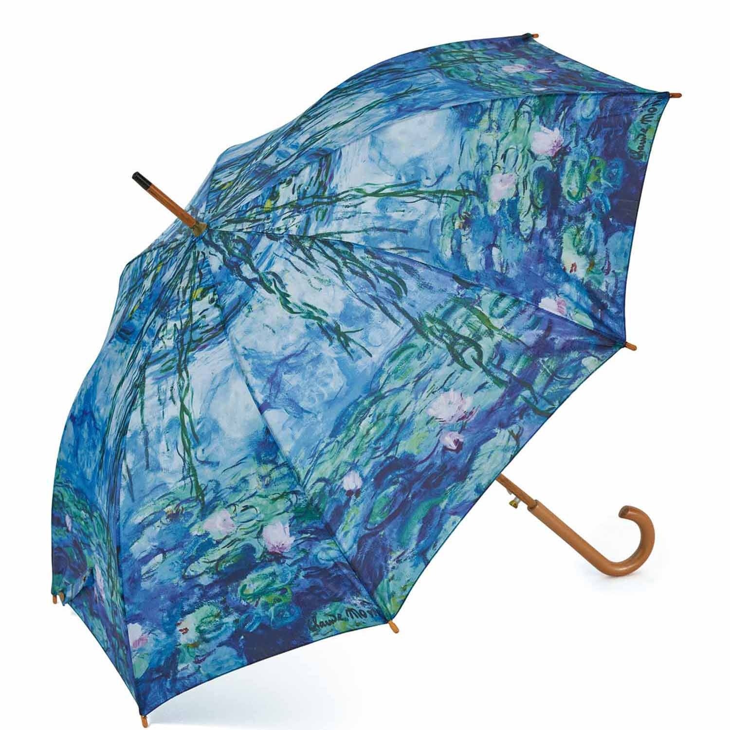 ■松下信平商店/名画木製ジャンプ傘 睡蓮(ポリエステル100%、親骨の長さ:58.5 ㎝) 2,420円