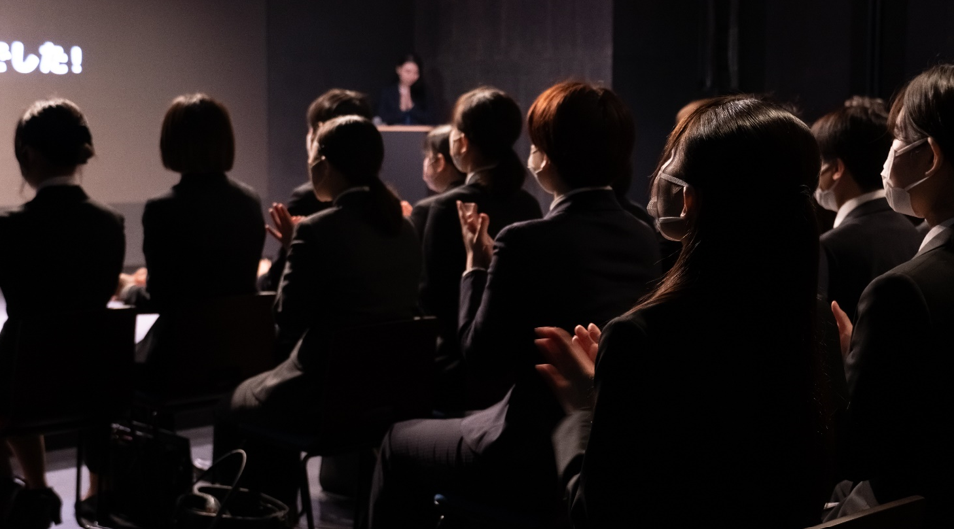 新入社員のみなさまには株式会社マーキュリーの企業理念スローガンであるとなる『感動エージェント』について、感動を提供するプロフェッショナル集団としての考えや、新時代、これからの未来についてご紹介いたしました。
