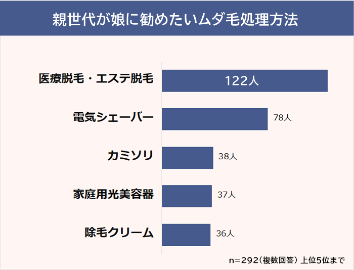 親世代が娘に勧めたいムダ毛処理方法は「医療脱毛・エステ脱毛」
