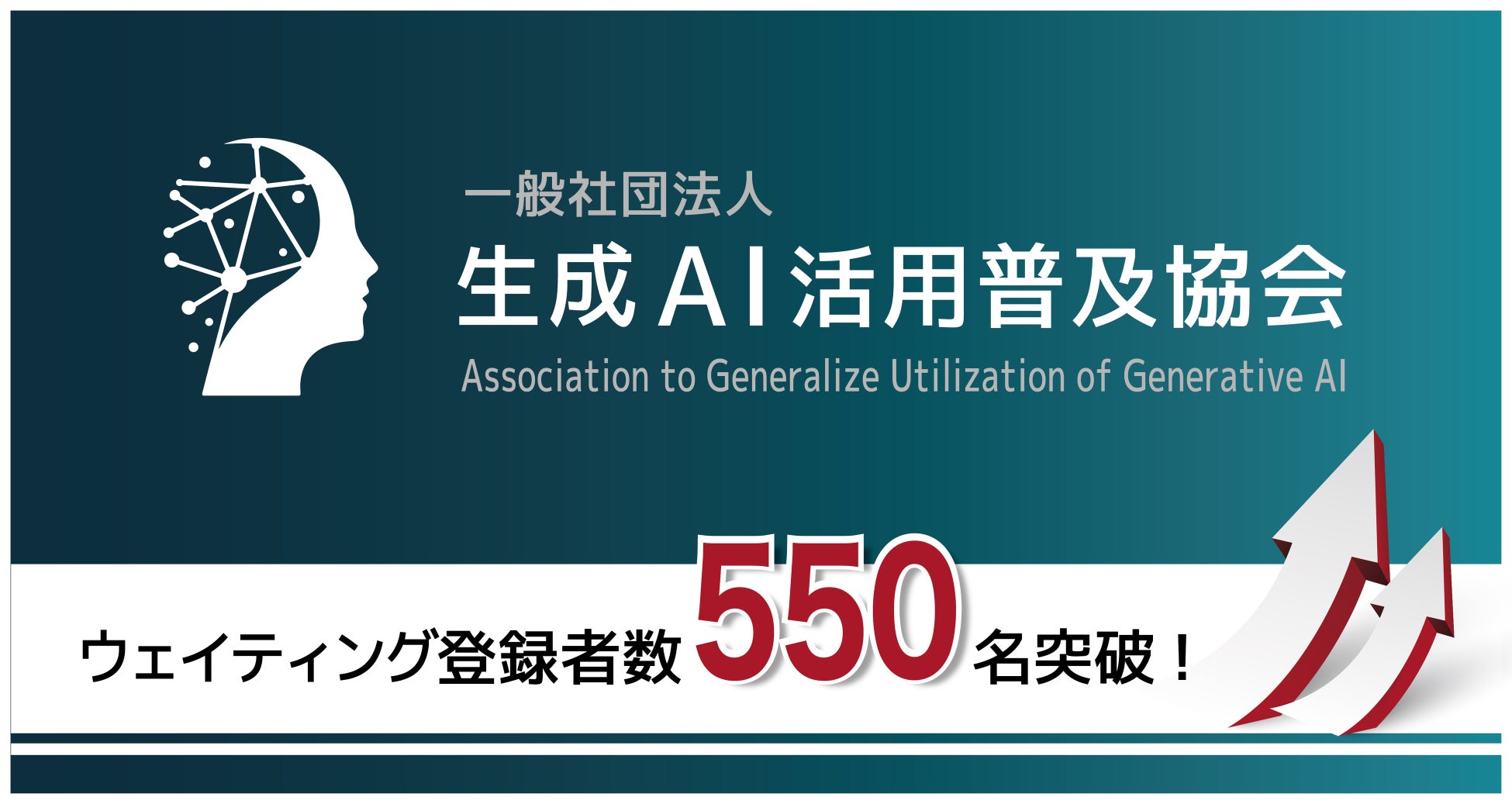 2023年5月10日のGUGA設立から1日間が経過し、ウェイティング登録者数は累計550名を突破しました。GUGAが掲げる「生成AI活用の知識・スキルを可視化し、企業活動における普遍的なビジネススキルの一つとして社会実装する」という目的に共感し、活動への参画をご検討くださっている多くの企業さま・個人さまに続々とご登録いただいております。ご登録においては「最新情報の収集」「法人での導入」「個人での資格取得」「パートナーとしての参画希望」とさまざまな目的で興味をお持ちいただいております。皆さまのご期待に添えるよう、1日でも早く具体的な認定試験の内容や会員制度をお知らせすることを目指し、早急に準備を進めて参ります。