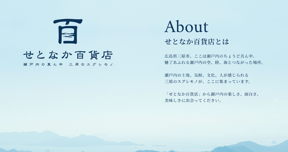 「せとなか百貨店」は、三原市の地域産業が生み出した数々のスグレモノが集まっています。
