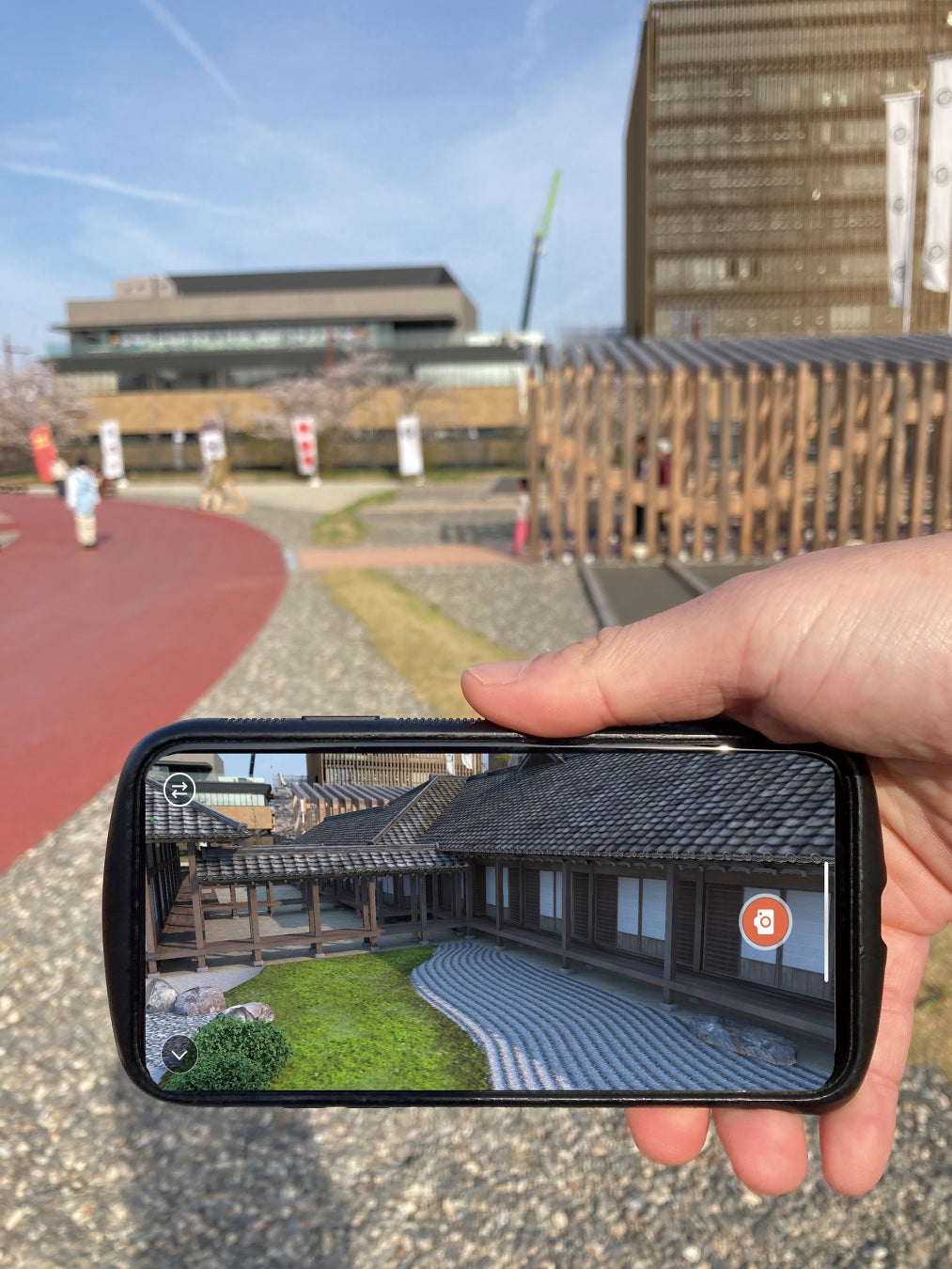 アプリを使い、指定場所でスマートフォンをかざすと、大河ドラマ館の敷地となっている「二の丸御殿」、「枯山水庭園」をARで見ることができます。また、歴史体験型XRストーリー「三方ヶ原の戦い」の公開も開始。迫りくる武田軍や家康公の決断などの名場面が体験できます。浜松城では、当時の浜松城全景から御殿内での軍議の様子、天守門などをVRで楽しめます!
