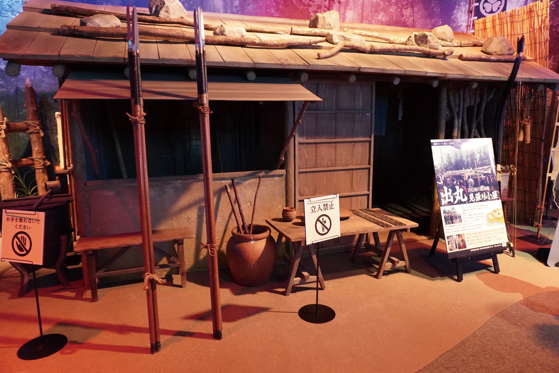 浜松城の最前線基地「出丸見張り小屋」は、ドラマで実際に使用されたもの。屋根の上の大きな石は発泡スチロールで作られていますが、見た目はまさに岩石。木材も経年劣化を感じられる加工が施されています。実物のように表現する大道具・美術の技を、間近で観察してみてください。