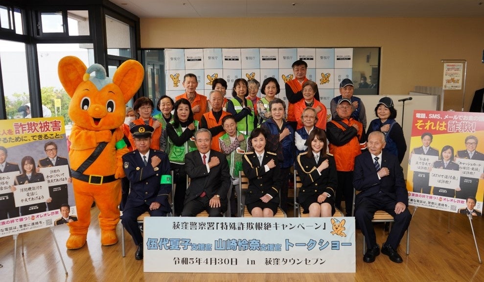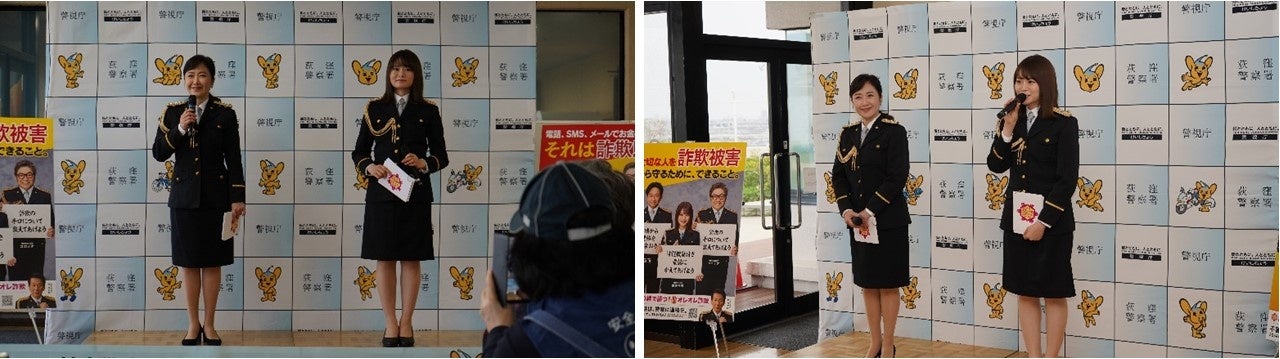 この度、特別防犯支援官の伍代夏子氏、山崎怜奈氏が、警視庁荻窪警察署主催の特殊詐欺根絶キャンペーンに登場しました。キャンペーンの中で両支援官は、警視庁のマスコットキャラクターであるピーポくんと共に、「オレオレ詐欺」「サポート詐欺」の手口や被害防止方法、「闇バイト」の危険性について解説し、注意喚起を行いました。