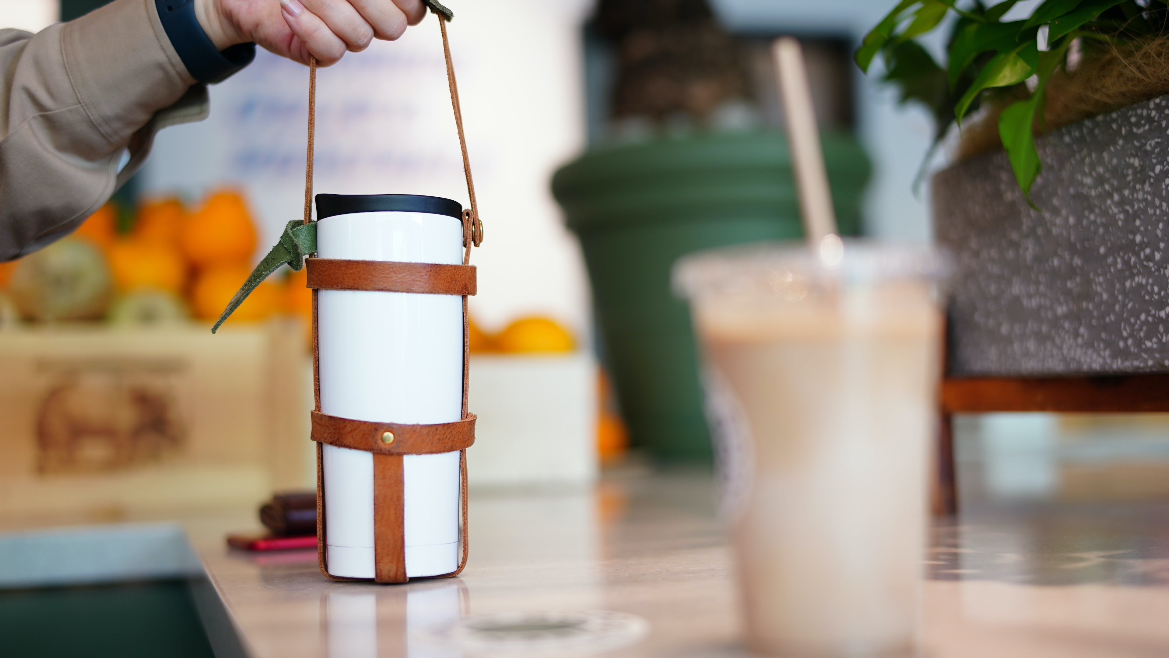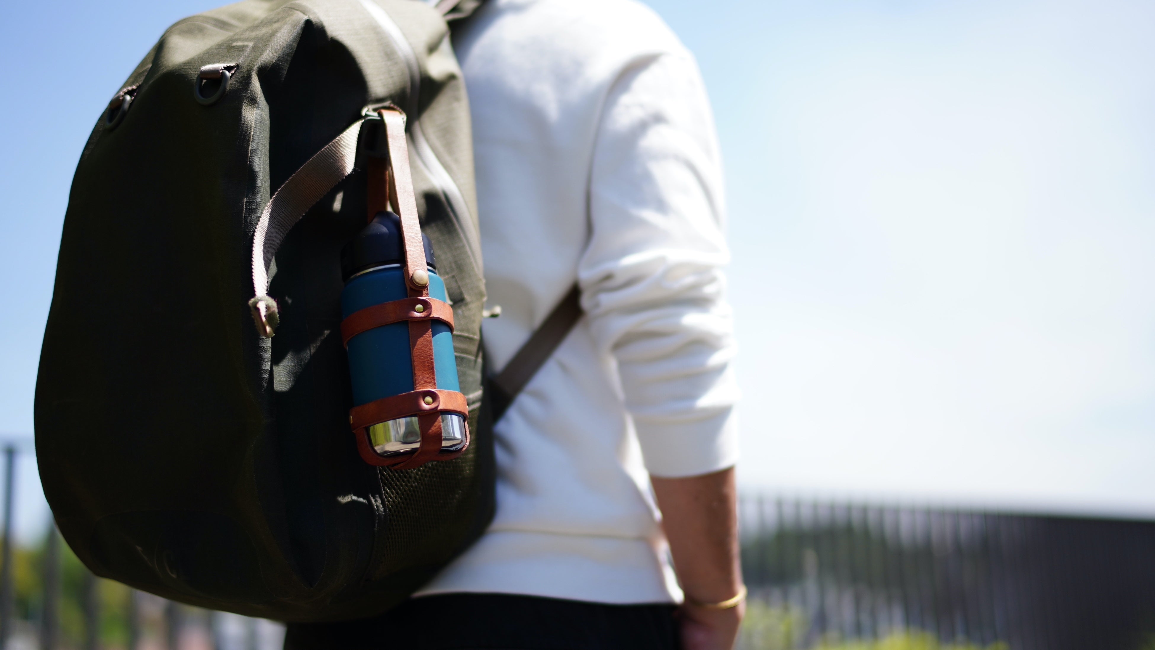 この商品は今よりもより快適にマイボトルを持ち歩けるように設計しました。またマイボトルを長い間持ち運べる様、飽きのこないシンプルなデザイン、サステナブルな素材である植物タンニンなめし革(牛ヌメ革)を使用しています。