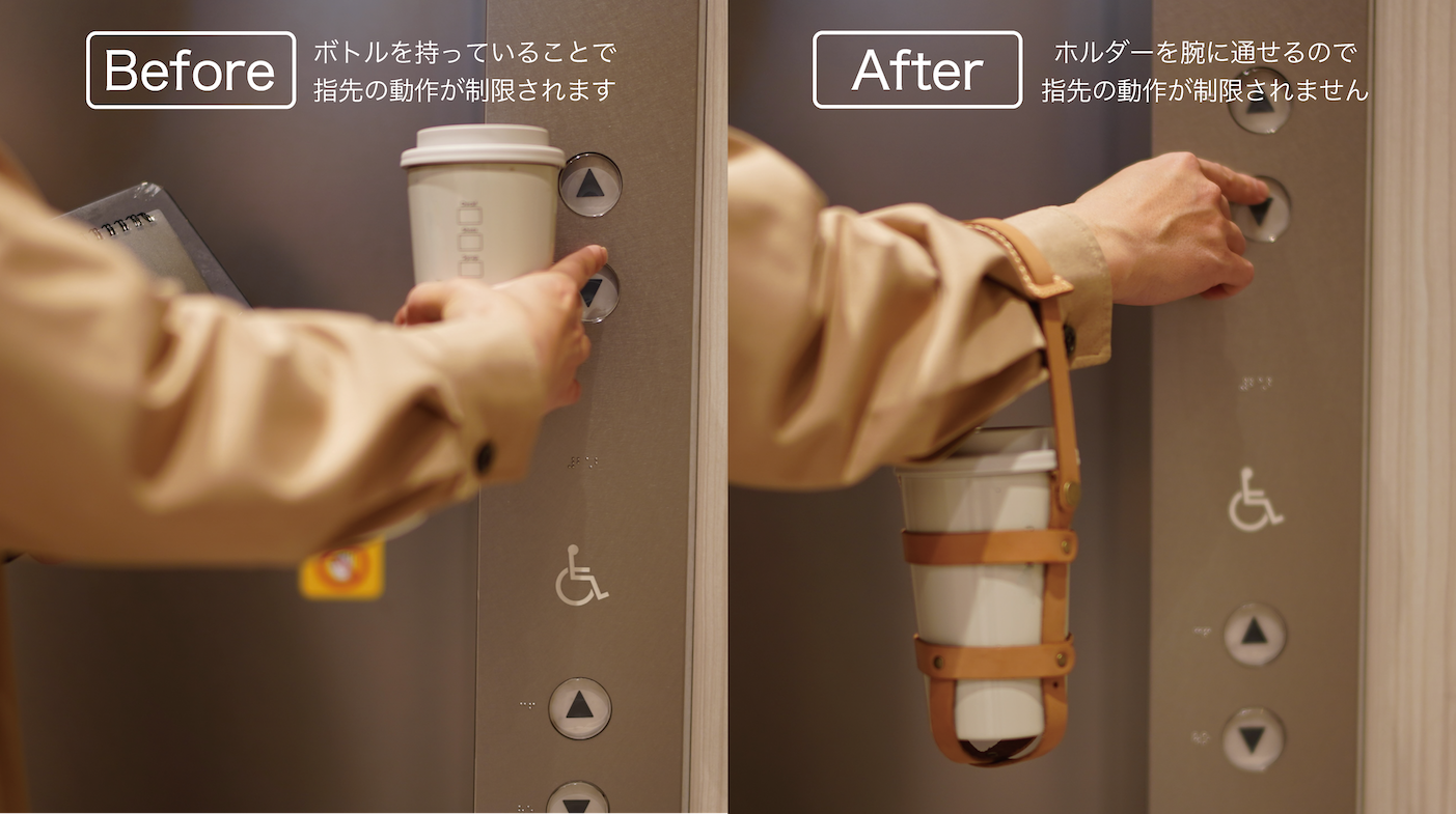 マイボトルには多様な種類があり、そのサイズに合わせた専用のホルダーを探すことが難しいという課題があります。そこで、私たちは簡単な計測であなたが持っている水筒やボトルにぴったりのホルダーを製作し、マイボトルの持ち歩きの困りごとを解消することを目指しました。