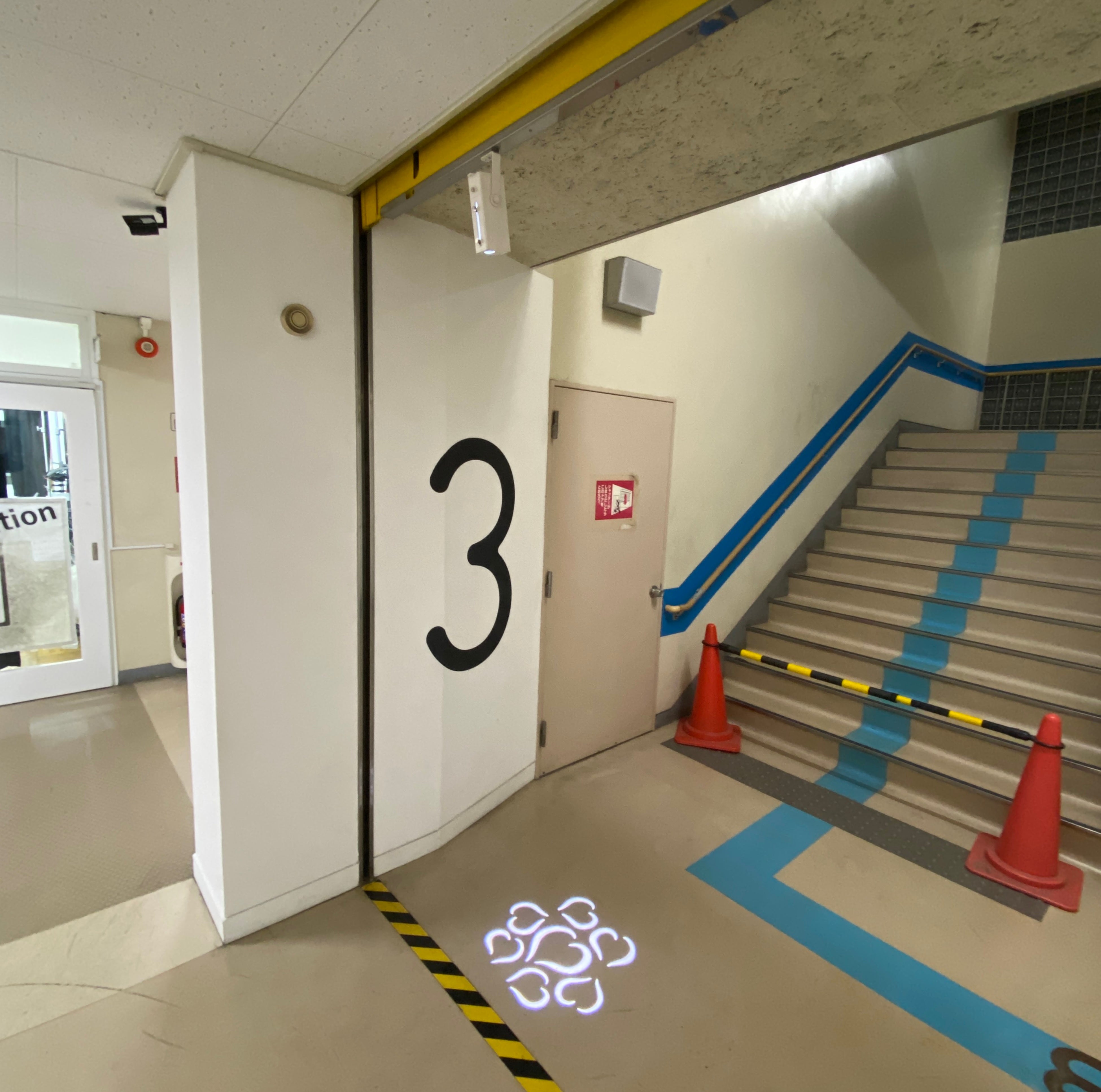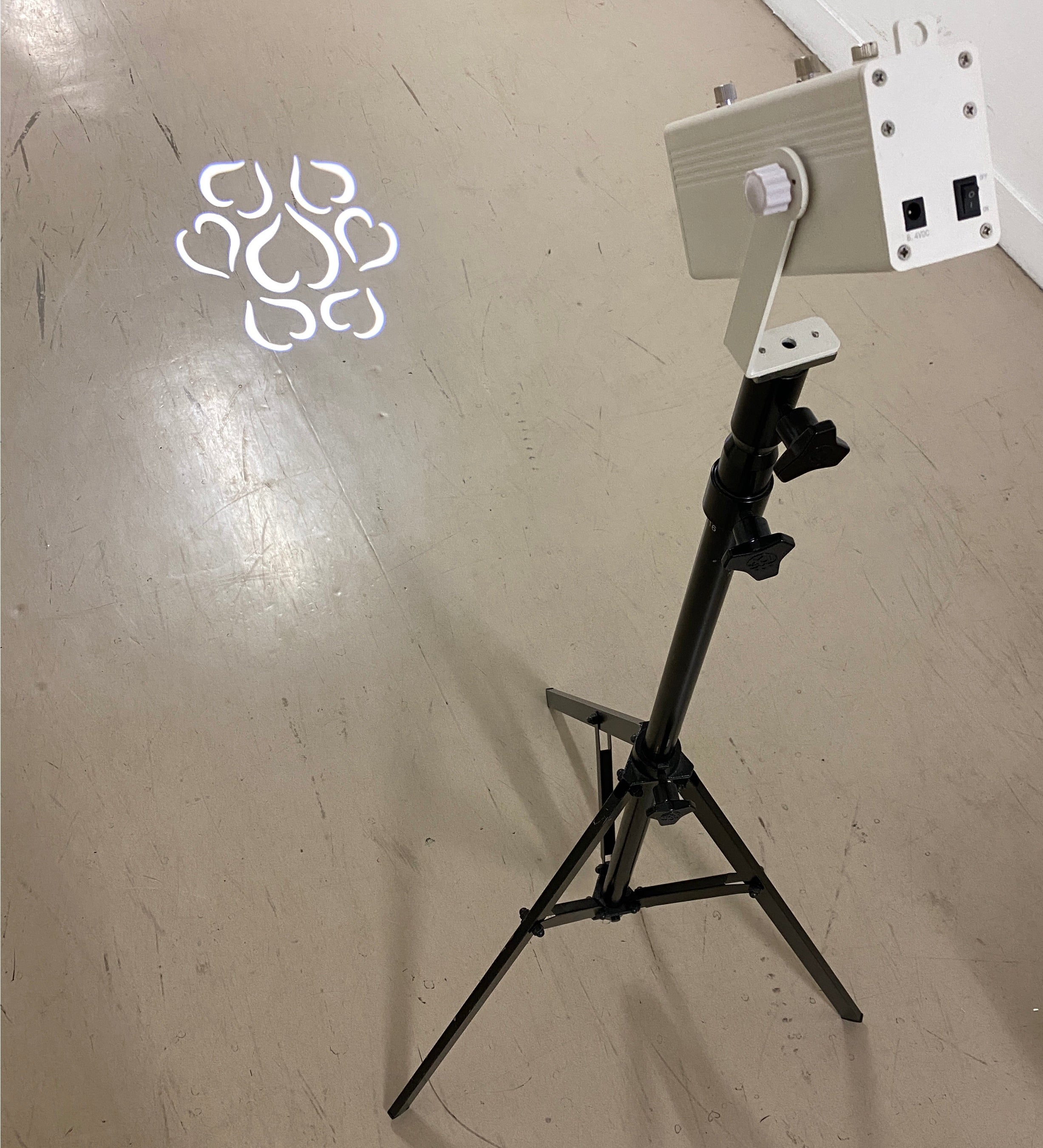 足元や壁面にゴボを使用して、光のサイネージができます。 マグネットで取付も簡単、バッテリー内蔵で