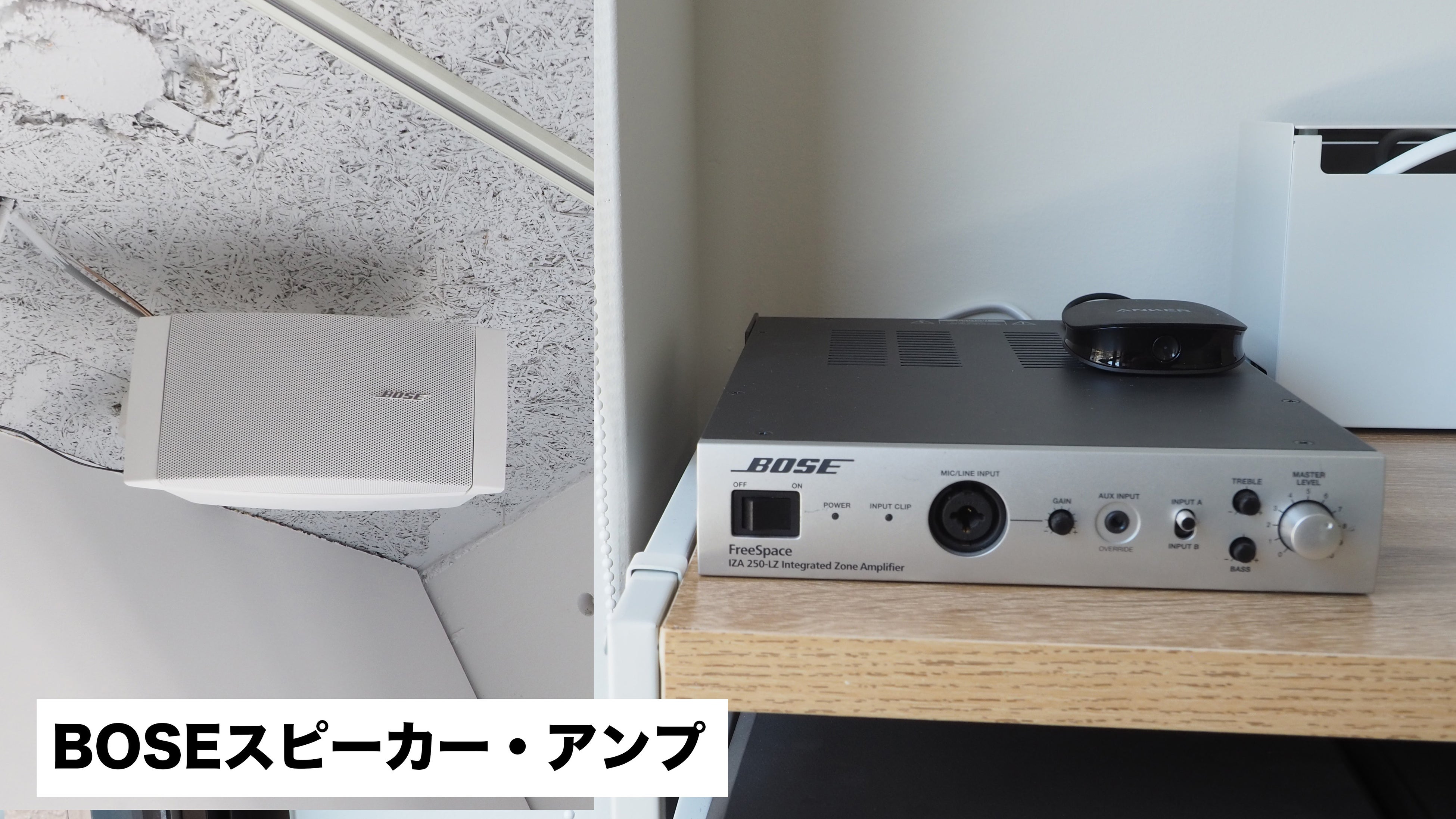 アンプ・スピーカーともにBOSEを採用。優秀な音響でレッスンも充実!