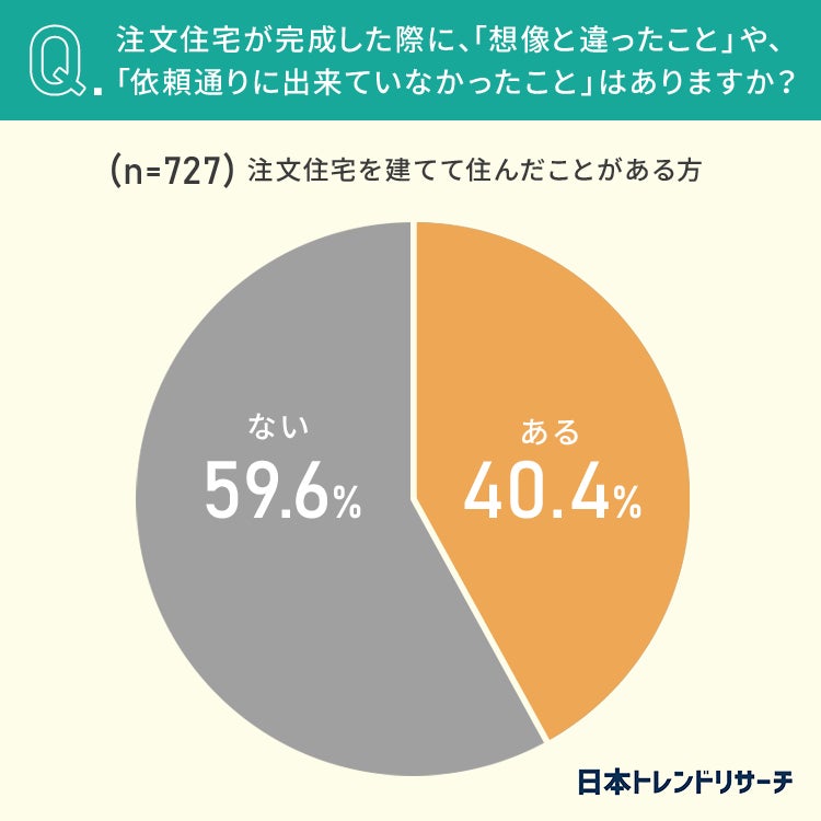 ■40.4%が、注文住宅が完成した際に、想像と違ったことや依頼通りに出来ていなかったことが「ある」