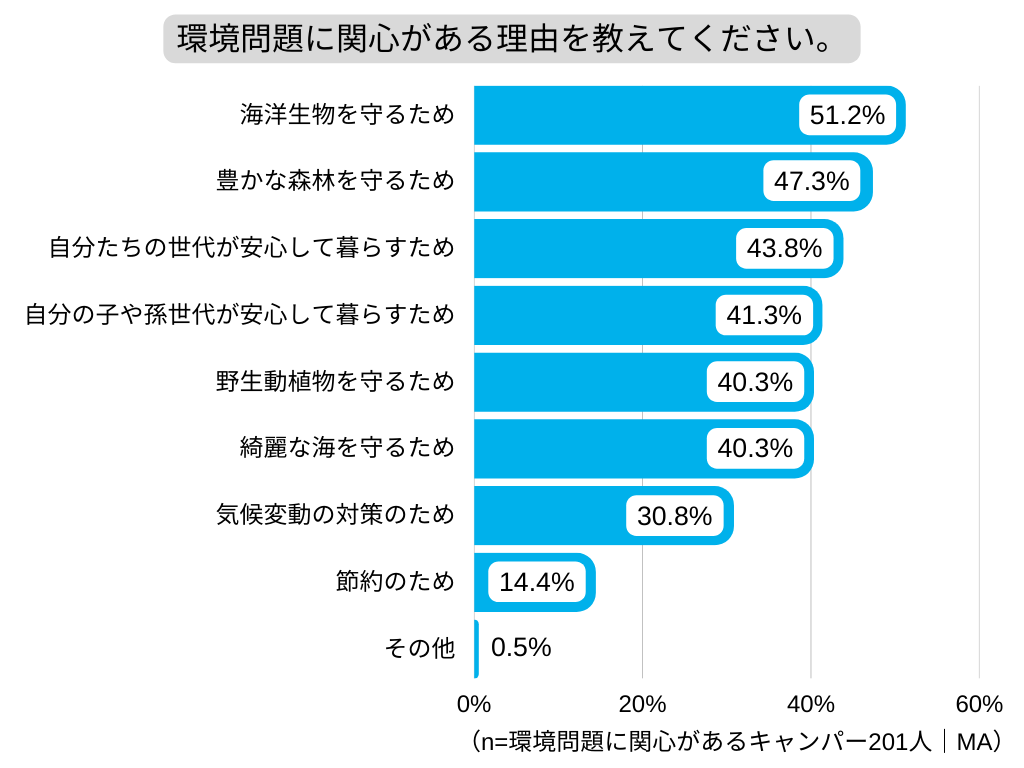 ・キャンパーが環境問題に関心がある理由、「海洋生物を守る」「森林を守る」