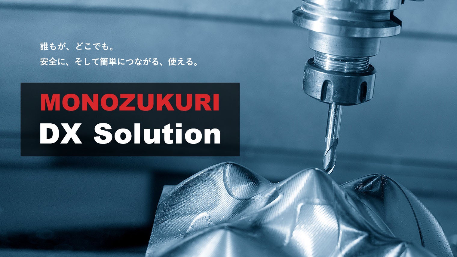 MONOZUKURI DX Solution は、IoTや加工レシピなどのソリューションを組み合わせてプラットフォームで提供することで、工場などの生産現場だけではできない加工を可能にします。