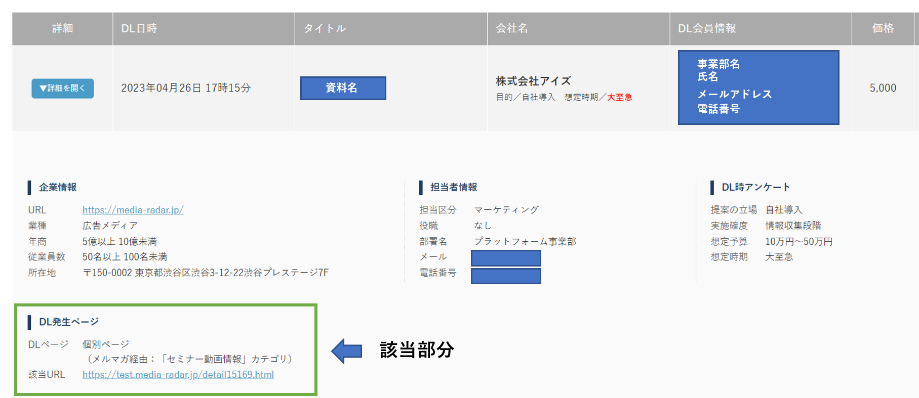 ・単価3,000円以上の資料リードに限り、資料のダウンロードが発生したページの情報が閲覧できます。