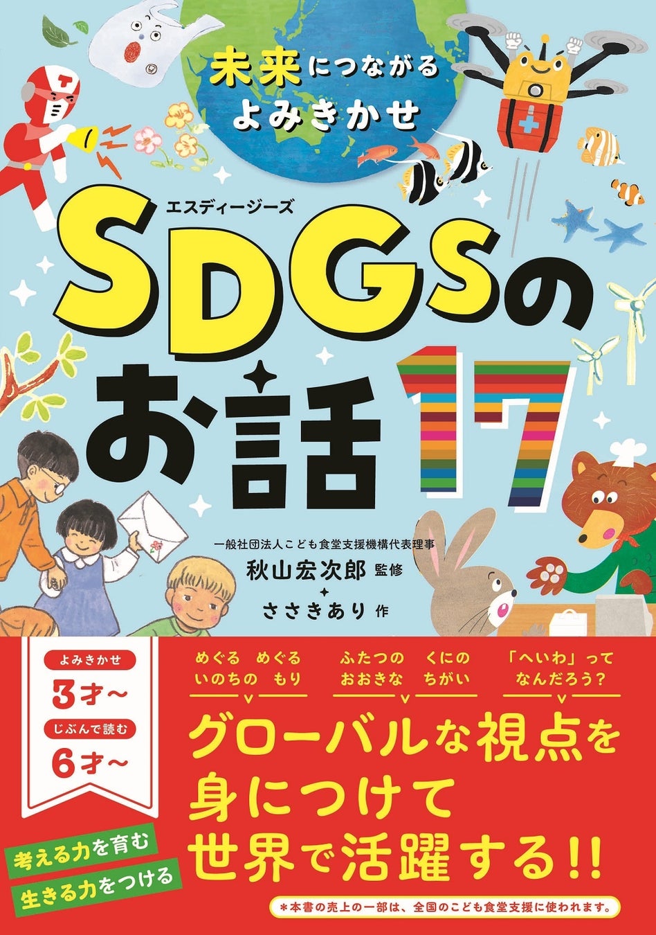 『未来につながるよみきかせ SDGsのお話17』は、SDGsの17の目標をやさしく教えるよみきかせ絵本です。SDGs(Sustainable Development Goals)は、国連に参加するすべての国が賛成して採択された、2030年までに達成すべき「持続可能な開発のための目標」です。SDGsの目標と世界の現状を知ることは、すべての人にとってよりよい未来をつくるための大事な一歩となります。こどもたちは、世界に変化をおこし、未来をつくる主役です。本書ではこどもたちの理解を助け、実際の行動につなげる工夫がなされています。