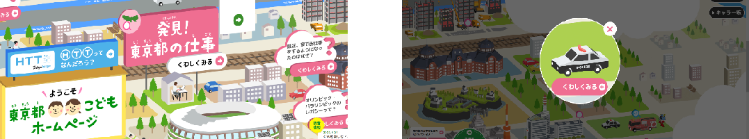 ➣ 発見!東京都の仕事:マップ上で東京都の仕事やキャラクターを探して学ぶ