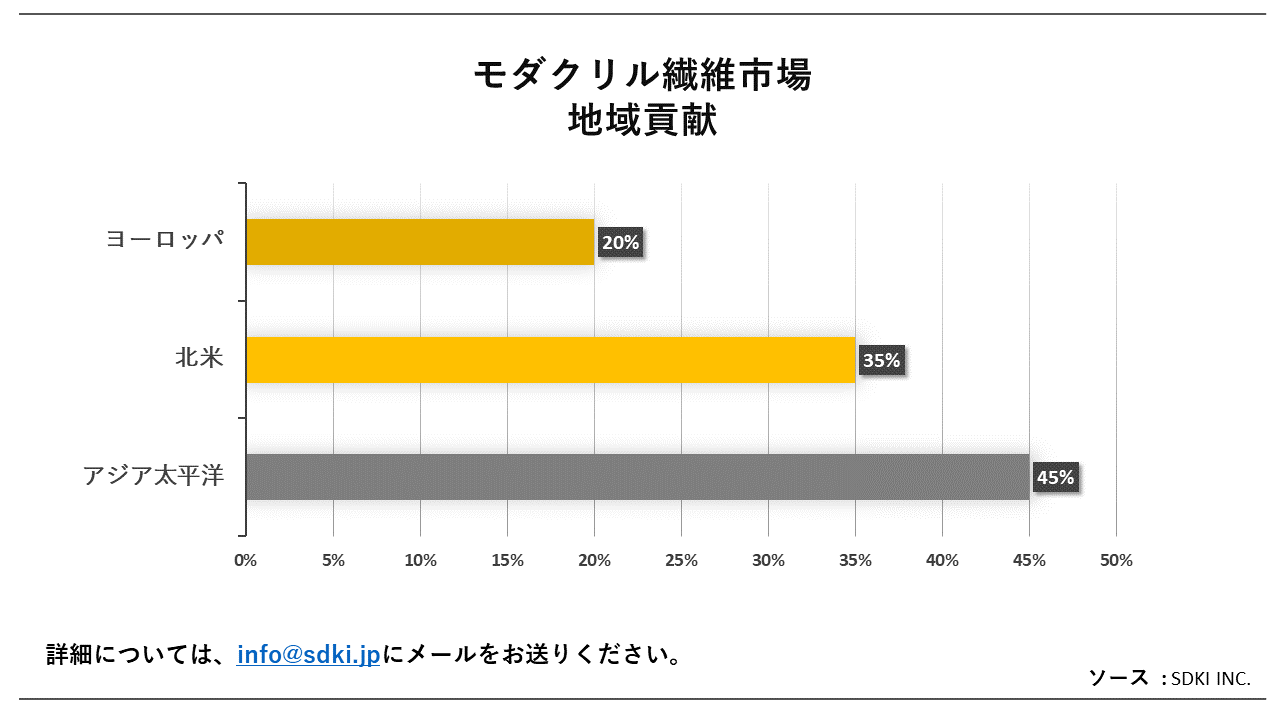 問題:アジア太平洋地域がモダクリル繊維市場で最も有利な機会を提供すると予想される理由は何ですか?日本におけるモダクリル繊維の市場動向は何ですか?