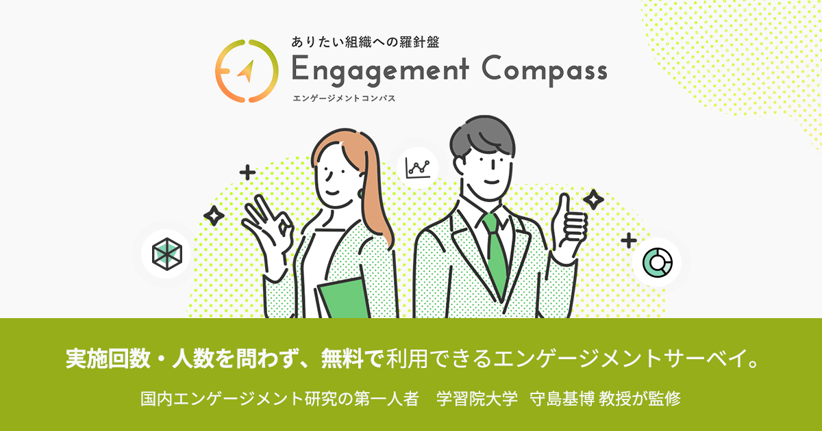 エンゲージメントコンパスは、人事のプロを支援するポータルサイト『HRプロ』が無料で提供するエンゲージメントサーベイです。