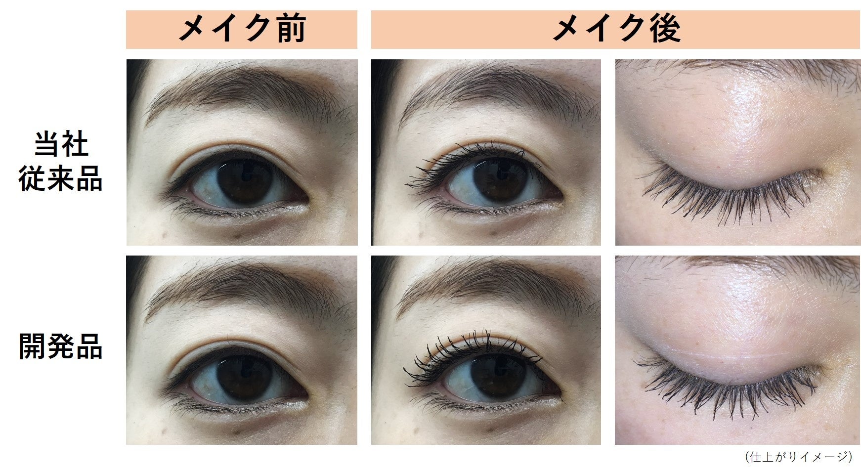 開発素材を配合したマスカラのボリュームアップ効果と化粧もち効果