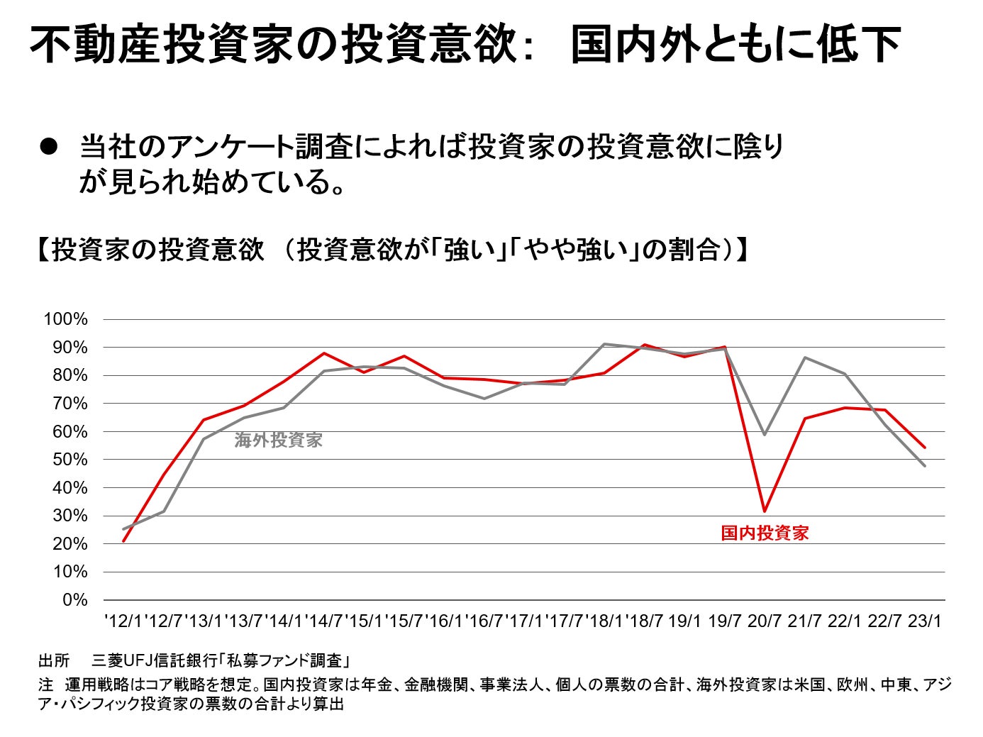 国内外ともに投資家の投資意欲に陰りが見られており、とりわけ、米国と欧州の投資家にその傾向が強い。
