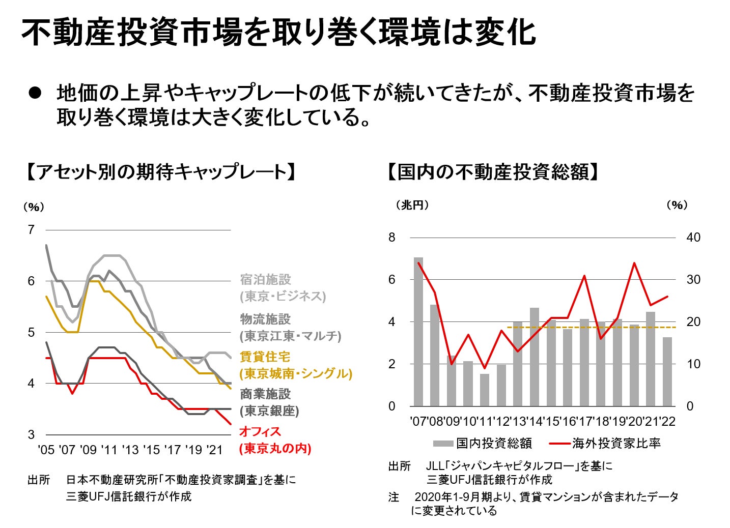 三菱UFJ信託銀行株式会社(東京都千代田区、取締役社長:長島 巌)は、この度不動産マーケットリサーチレポートVol.223「2023年の不動産投資市場(前編)」を発行しました。