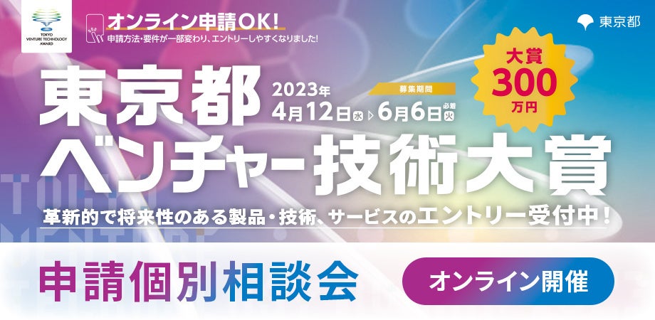 今年度より東京都ベンチャー技術大賞の申請はオンラインでも可能になるなど、申請方法や要件が一部変わり、エントリーしやすくなりました。