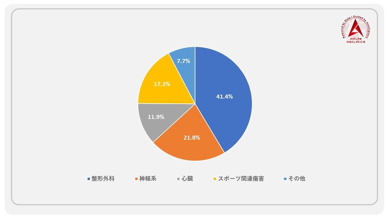 整形外科分野は、2023年から2031年にかけて116.8百万米ドルの最も高い成長機会を示すと予測され、神経分野は基準年2023年に2番目に高い市場シェアを保持しています。