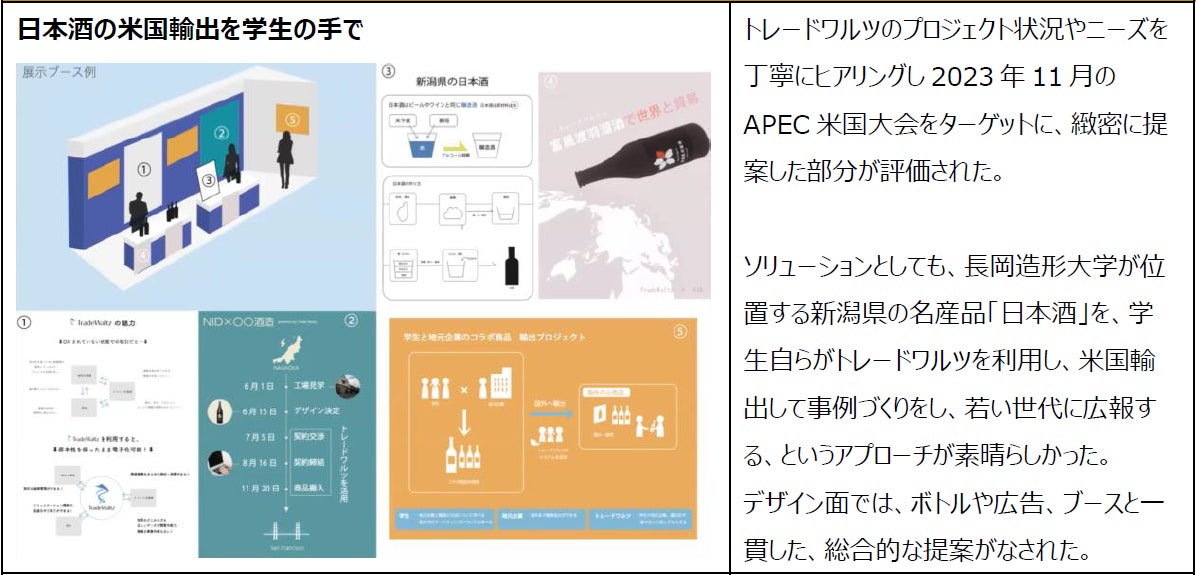 今回初めて、完全オンライン形式で学生提案型の授業を行いましたが、学生からの提案の質は高く、トレードワルツとして、実際にマーケティングプランとして採用したいものが複数ありました。