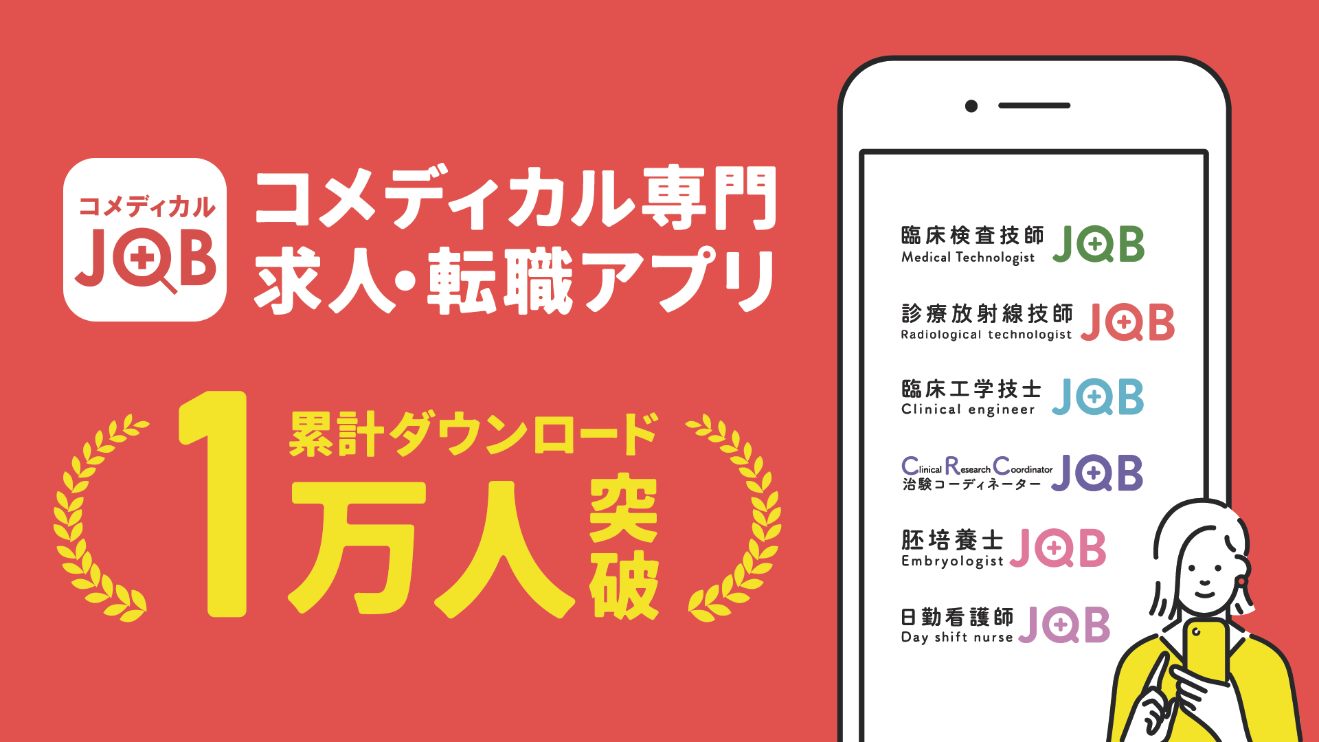 2017年9月8日(金)に正式バージョンをリリース後メジャーバージョンアップを4度行い、常に求職者様にとって使いやすいアプリとして改善を続けており、更にコメディカルの分野でも一定の職種に特化することで求職者様と雇用主様に質の高いマッチングを提供。その結果、数多くの求職者様にコメディカルJOBアプリをご利用いただいており、今回の累計10,000ダウンロード突破に繋がったと考えております。