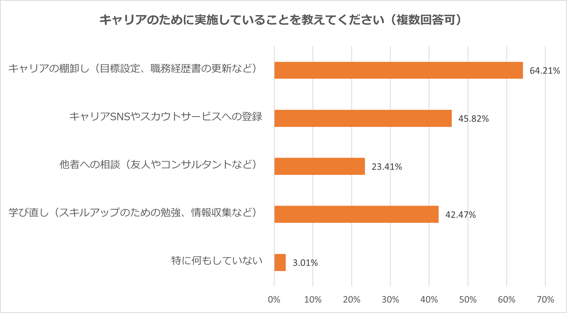 ハイクラス層がキャリアのために実施していること1位は「キャリアの棚卸し」 約65%が取り組む