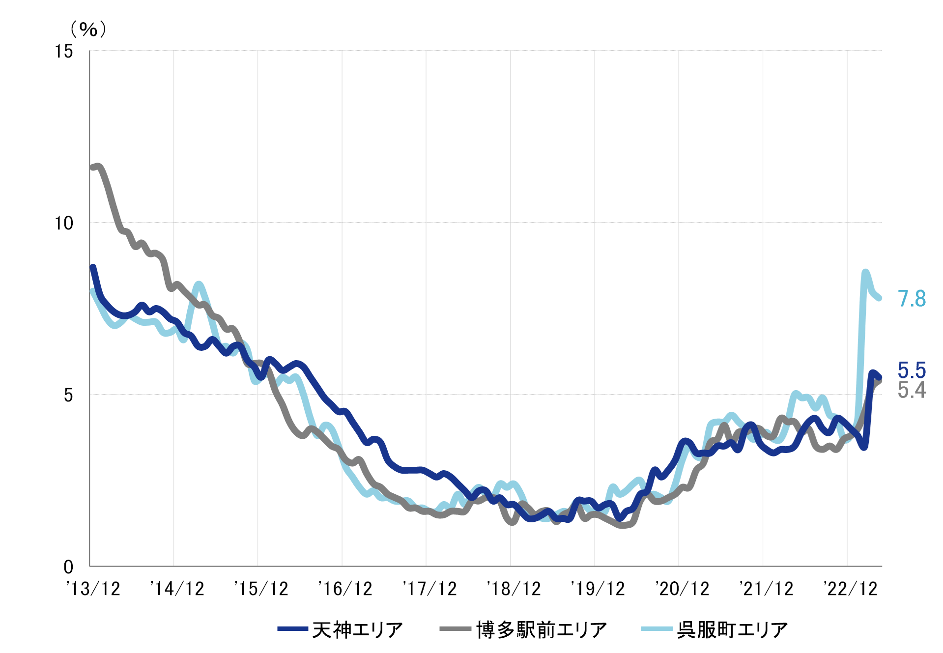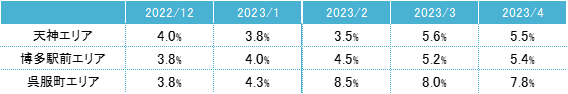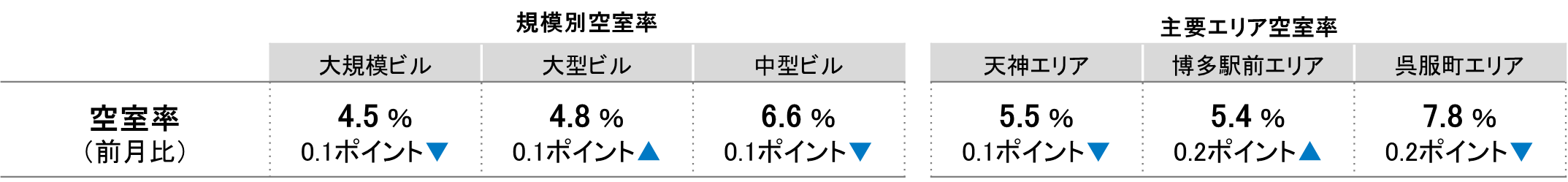 全規模ビル 主要エリア 空室率:「博多駅前」6ヵ月連続で上昇