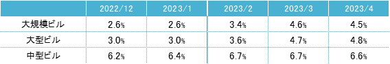 ※大規模ビル:1フロア面積200坪以上、大型ビル:同100坪以上200坪未満、中型ビル:同50坪以上100坪未満
