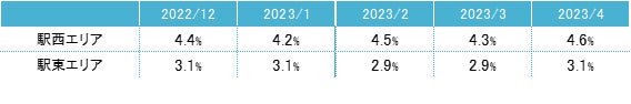 全規模ビル 主要エリア 空室率:「駅東」3ヵ月ぶりに3%台へ上昇
