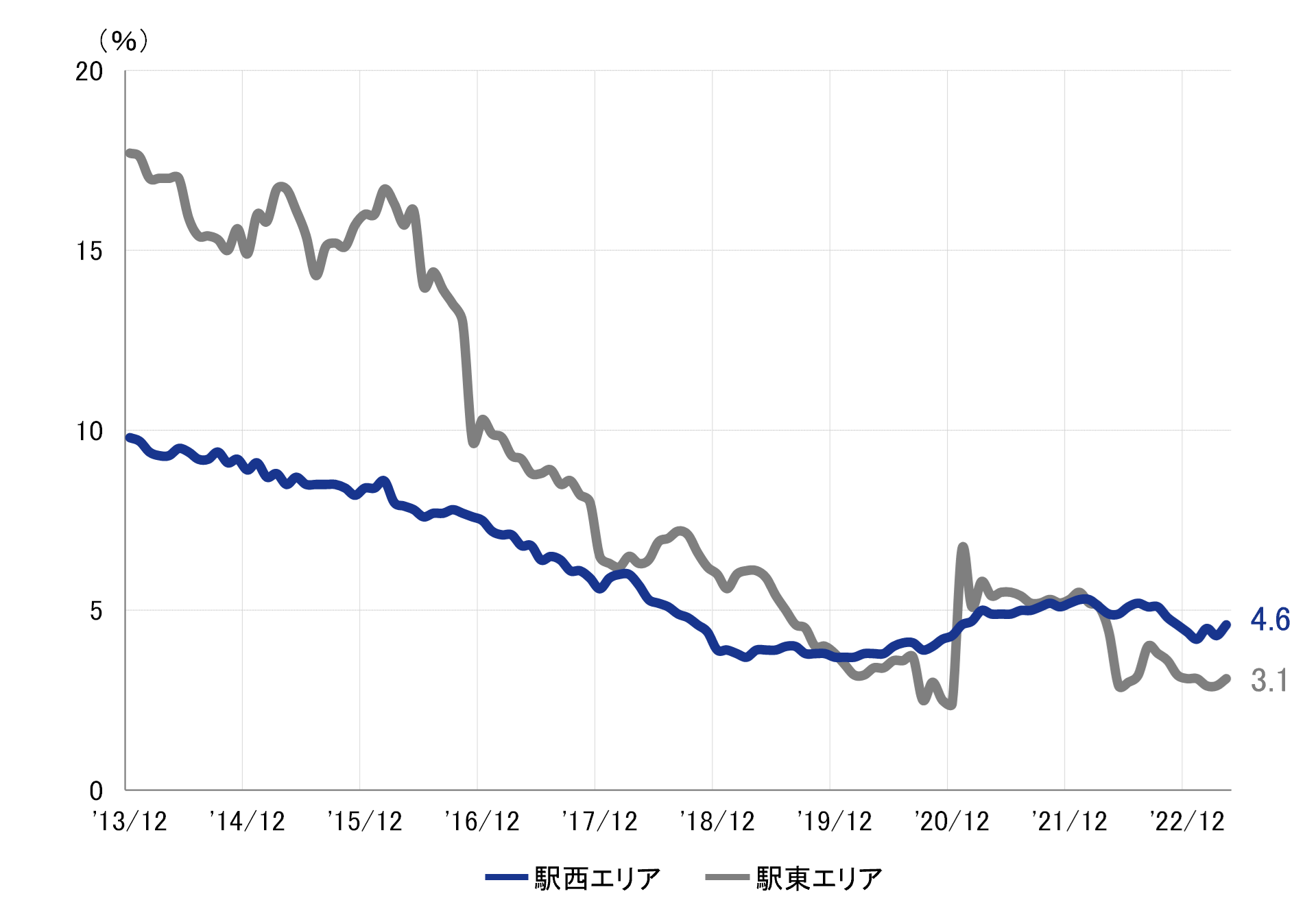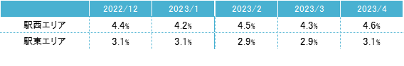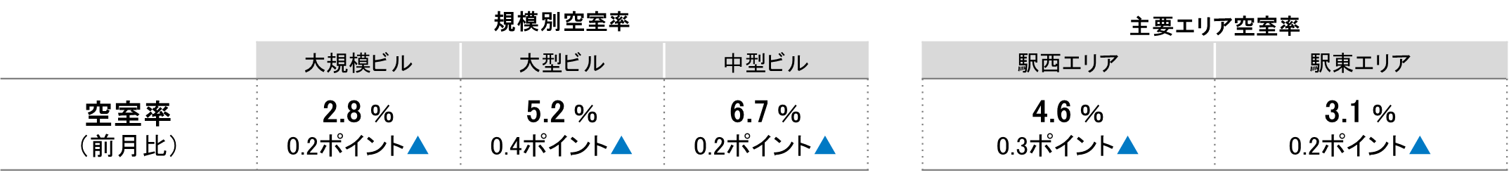 全規模ビル 主要エリア 空室率:「駅東」3ヵ月ぶりに3%台へ上昇