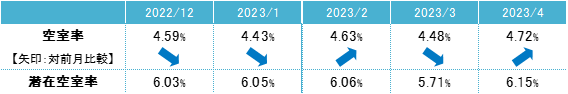 ※潜在空室率:貸付総面積に対する「募集面積」の割合
