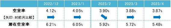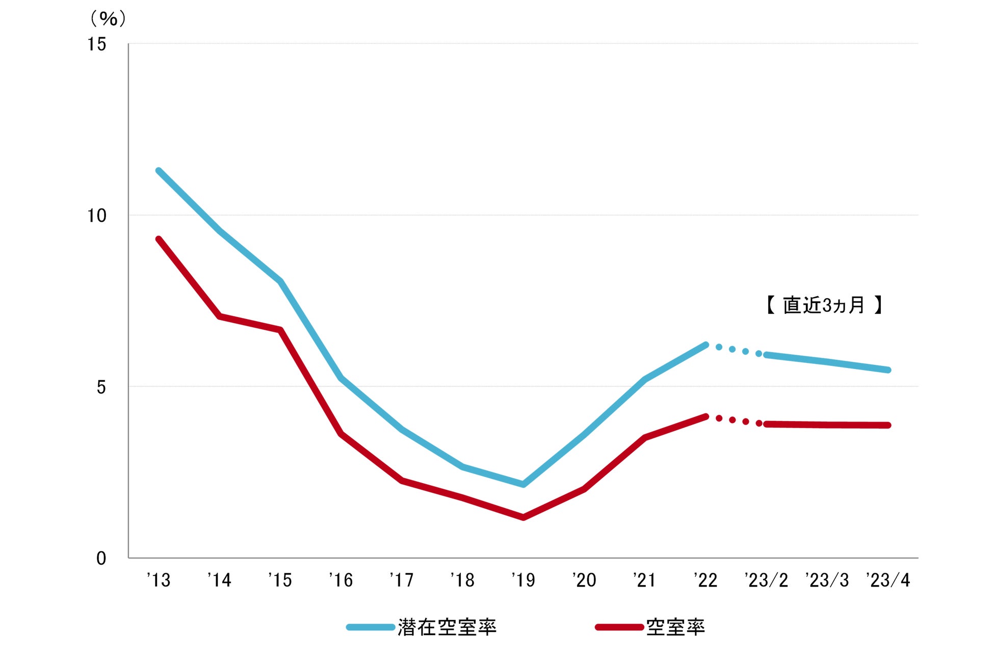 潜在空室率 5ヵ月連続で低下し、5%台半ばへ