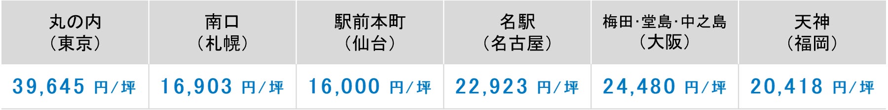 その他の全国6大都市の大規模ビル(東京・札幌・仙台・名古屋・大阪・福岡)のマーケットデータをまとめた各都市のプレスリリースは、下記リンク先よりダウンロードいただけます。
