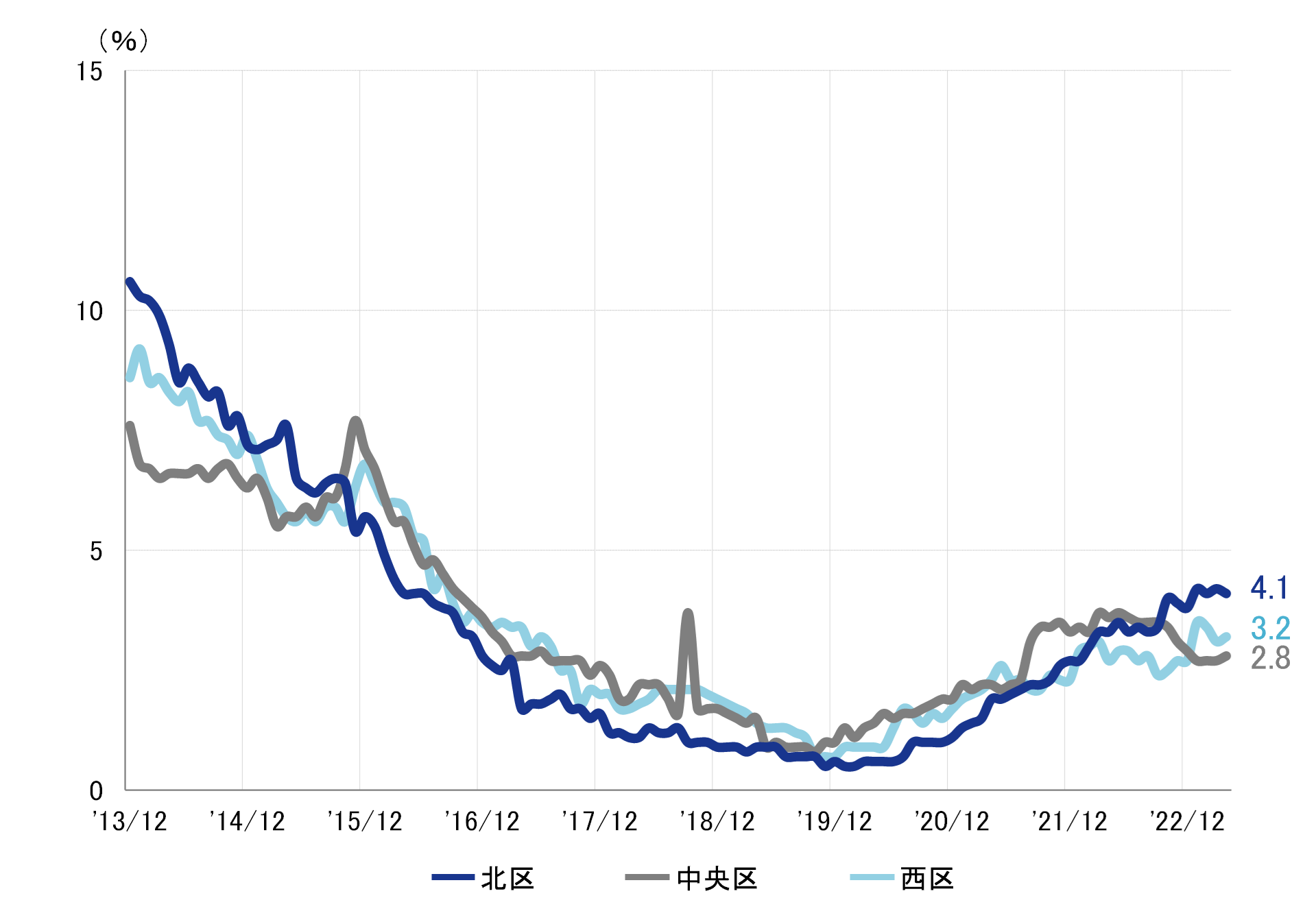 大規模ビル 主要3区 空室率:「北区」4%前後で推移
