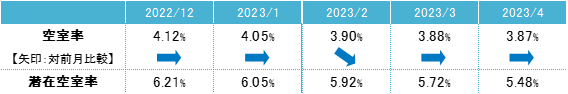 潜在空室率 5ヵ月連続で低下し、5%台半ばへ