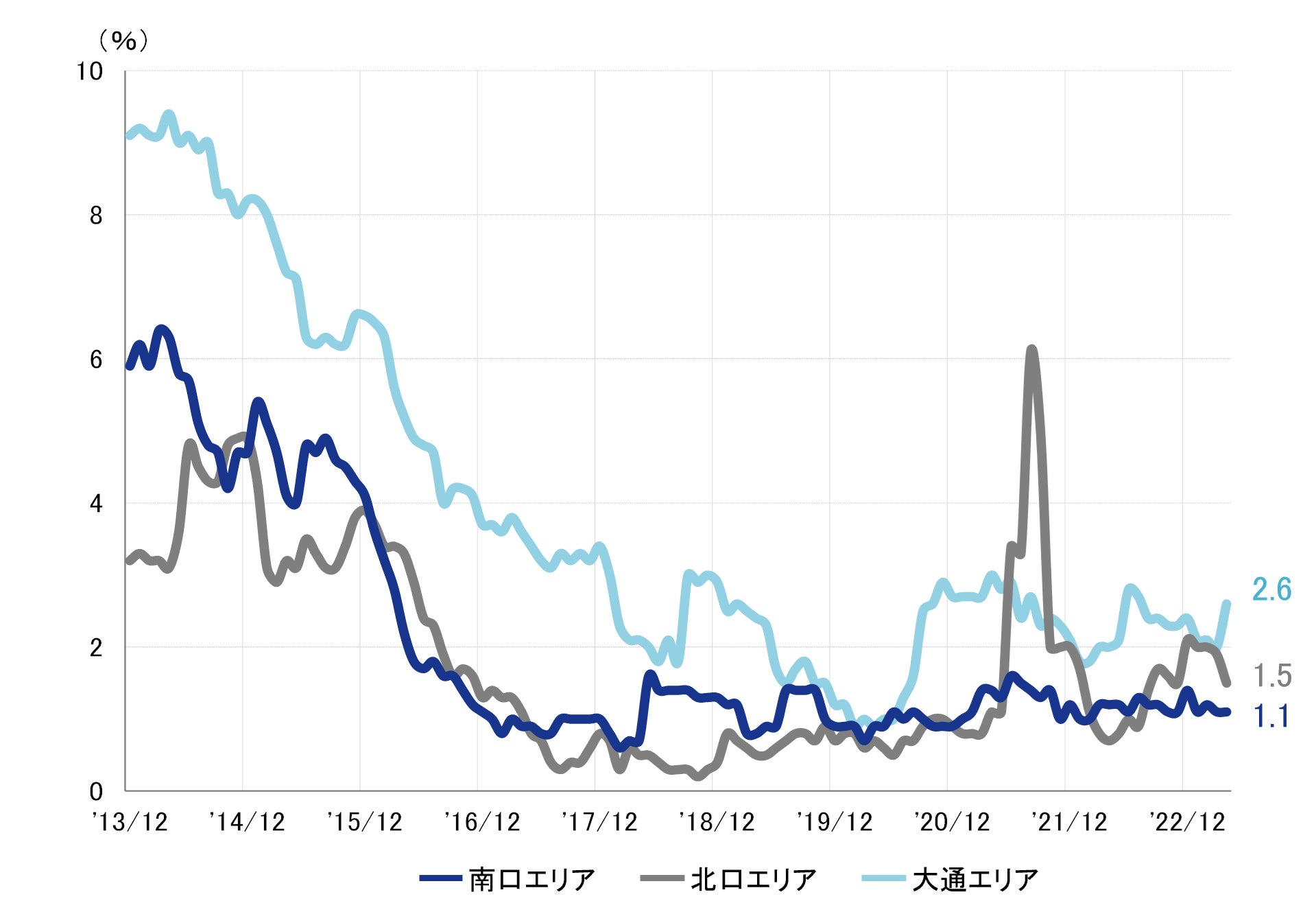全規模ビル 主要エリア 空室率:「大通」大幅に上昇