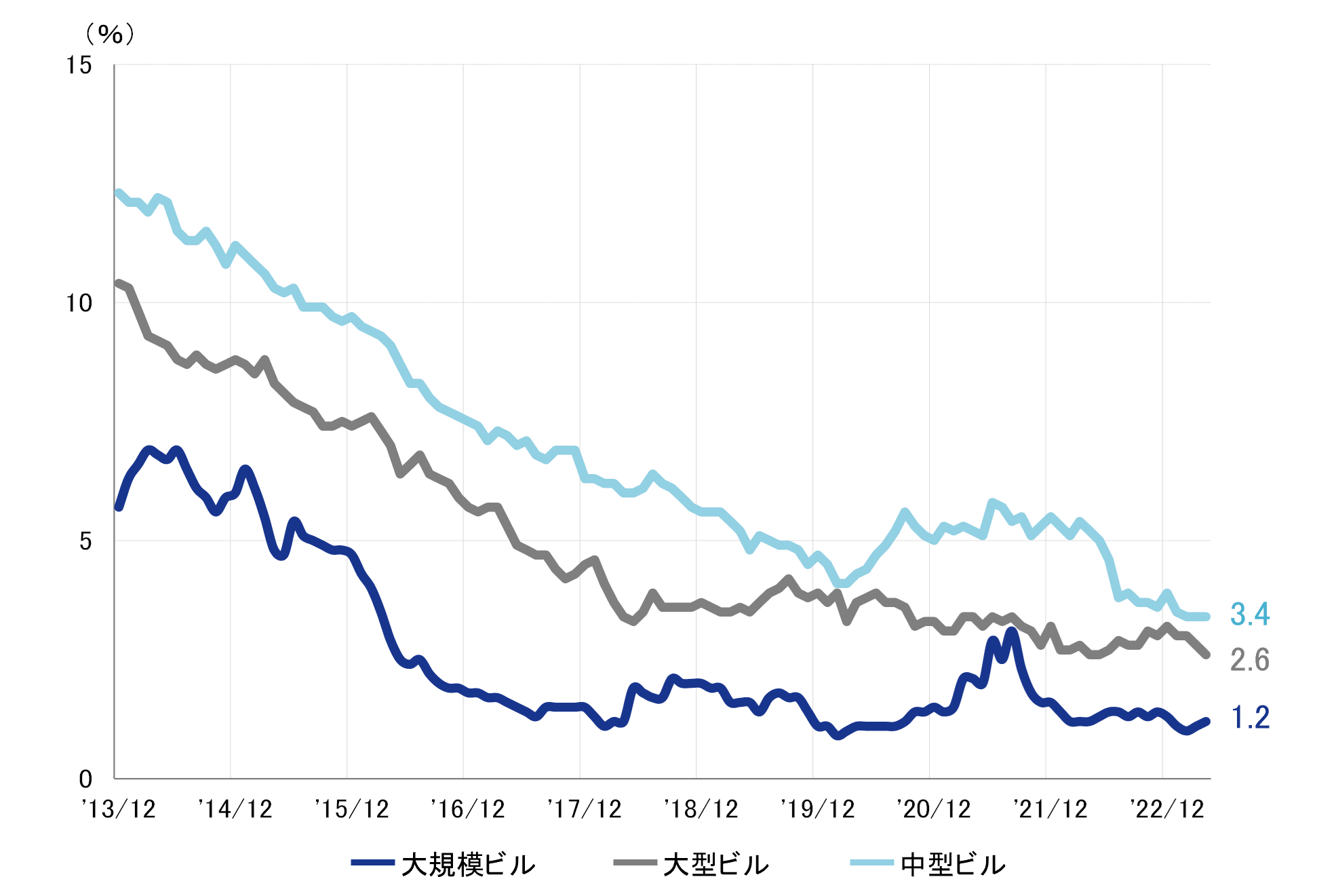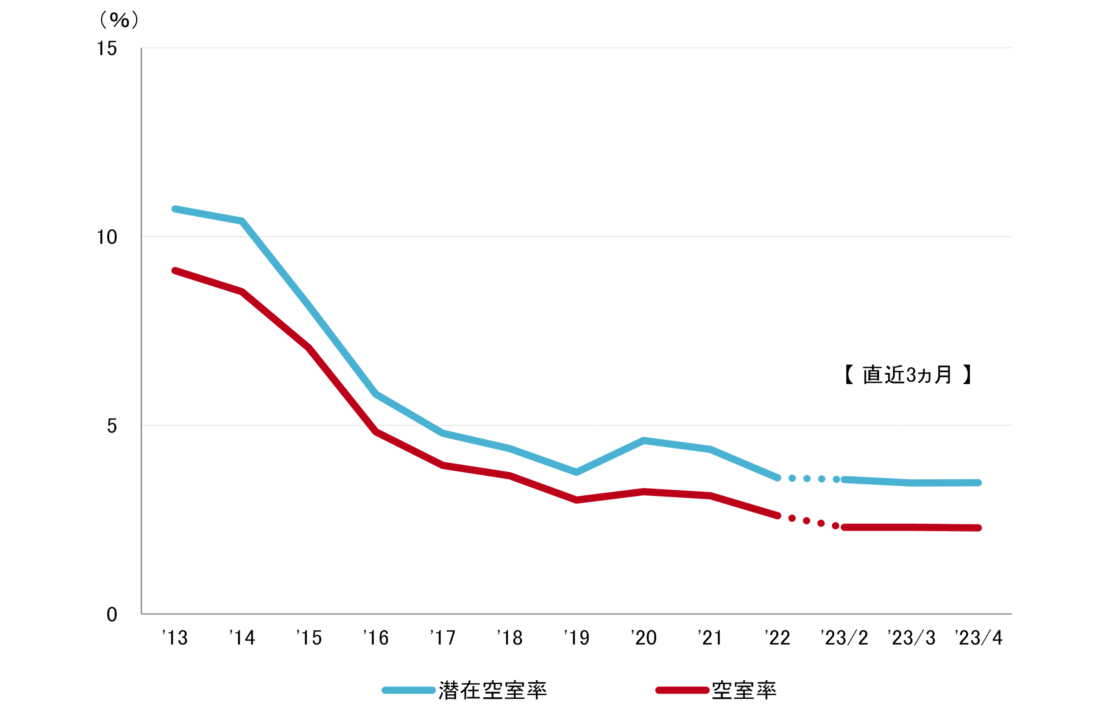 潜在空室率 3%台半ばで推移 需要は活発な状況
